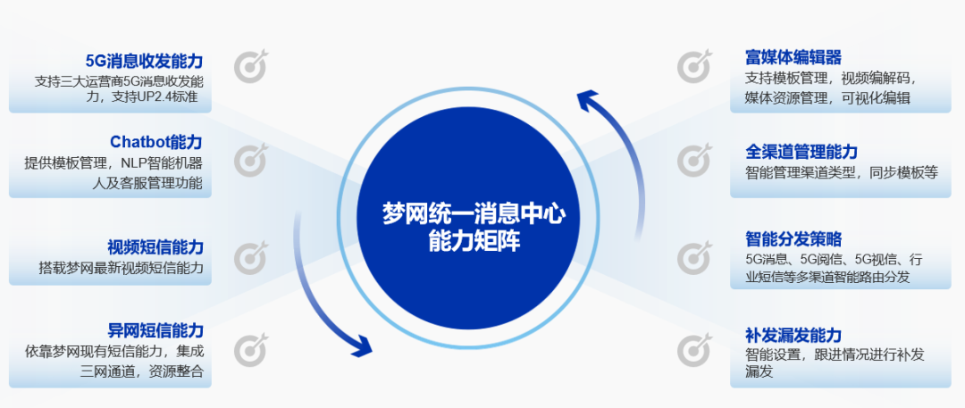 PA真人视讯统一消息中心(UMC)作为面向5G时代打造的融合通讯解决方案,集智能接入、智能管理、智能生产、智能运营和智能营销于一体,实现了全终端、全场景、全业务、全渠道的广泛覆盖。UMC给予灵活的在线SaaS服务和定制化的线下私有化部署方案,能够满足不同行业的多样化需求,并全面对接市面上主流的5G阅信渠道,包括PA真人视讯阅信直发、天慧5G阅信、移动5G阅信、联通电信5G消息以及华为云KooMessage等,为企业构建起高效、稳定的通讯生态系统。