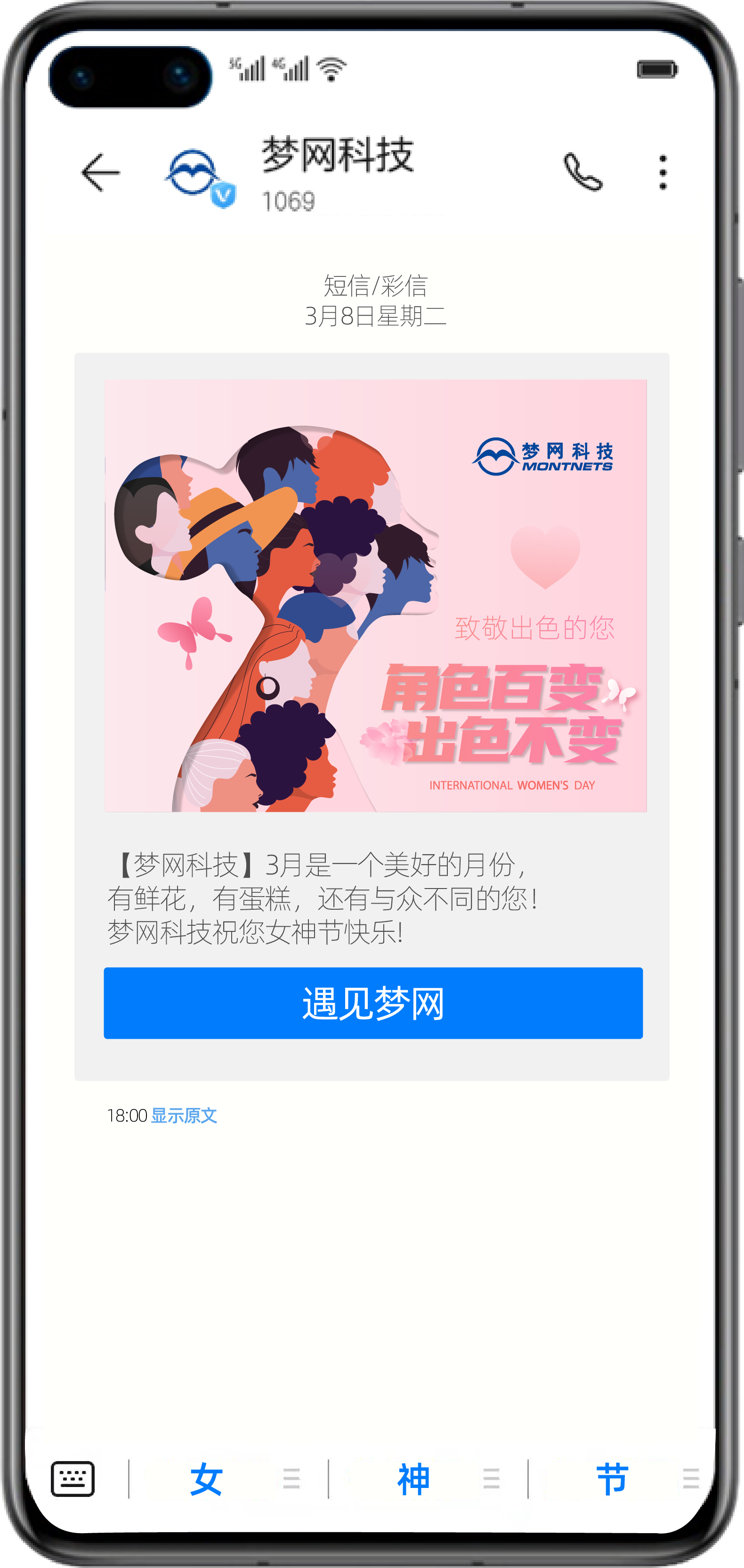 以3.8营销活动为例,商家顺利获得自定义底部菜单为“女神节”活动主题造势,同时也为用户给予更直观的营销服务指引。用户点击便可实现APP、快应用、H5等多渠道应用跳转,形成了全流程一站式信息闭环服务。商家还能顺利获得品牌信息的有效露出令服务消息更贴合品牌价值,以优质的通信营销生态提升用户粘性,实现高效转化复购。