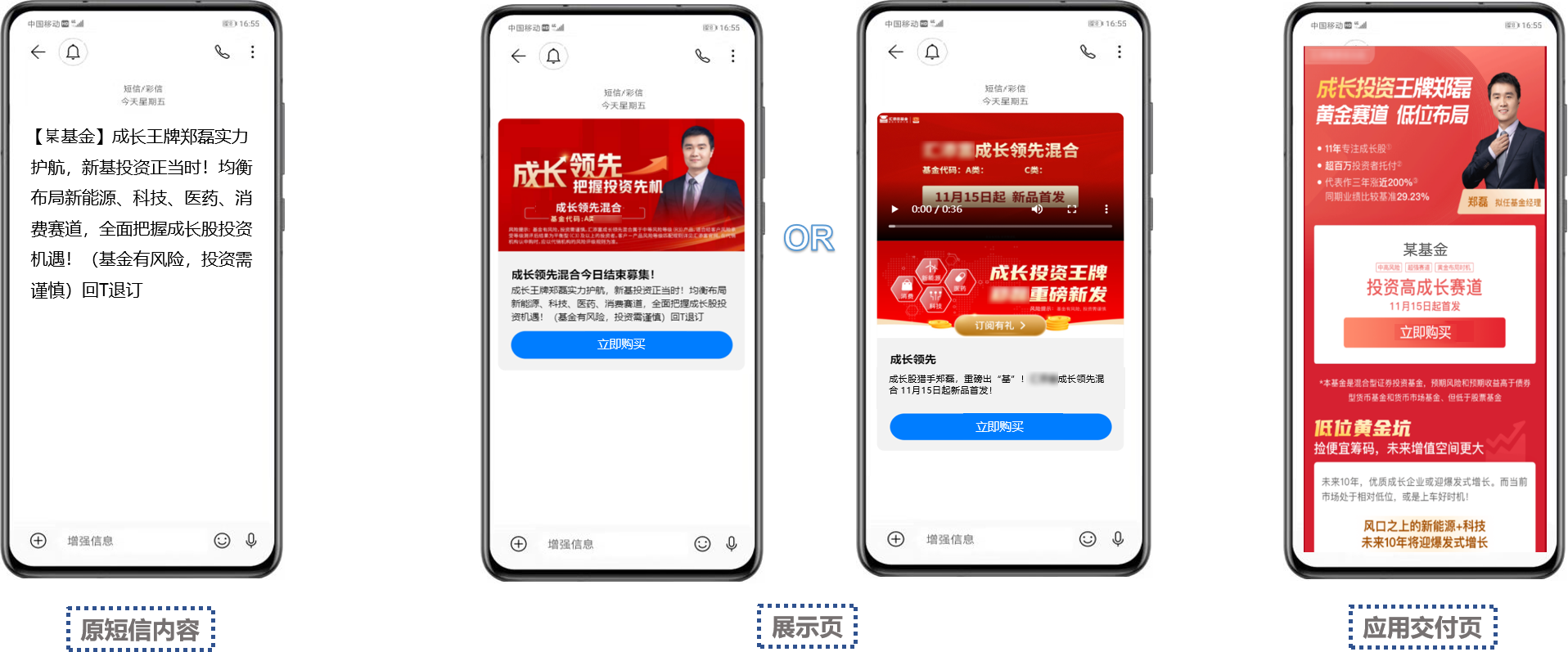 因传统短信高触达、广覆盖的产品特性,不少基金组织会顺利获得短信向他们的会员用户发送基金介绍,但用户收到短信后仍需要从长篇幅的文本中提取信息,这在一定程度上影响了产品推介的效果。针对基金业产品推介的需求,PA真人视讯科技5G消息解决方案带来了全新的营销亮点。