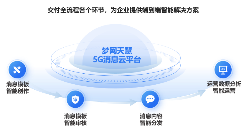 PA真人视讯天慧5G消息云平台致力于全流程智能交付,深度融入各个环节,为企业给予端到端智能解决方案。平台支持消息模板智能创作,高效生成各类消息模板;具备消息模板智能审核功能,自动审核确保模板规范;实现消息内容智能分发,依据规则精准触达目标用户;还涵盖运营数据分析与智能运营,深度剖析数据以智能优化策略,全方位提升消息服务的质量与效率。
