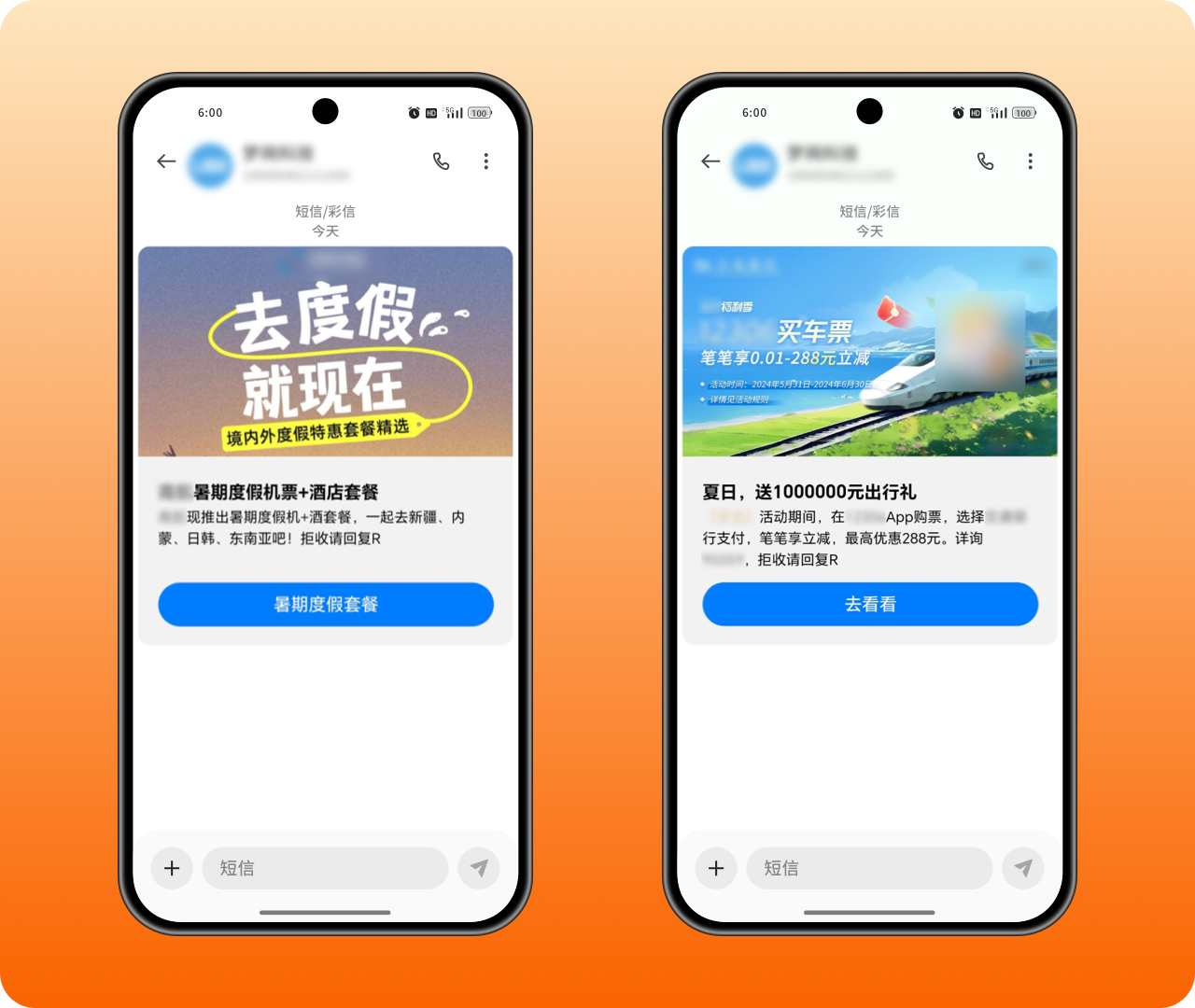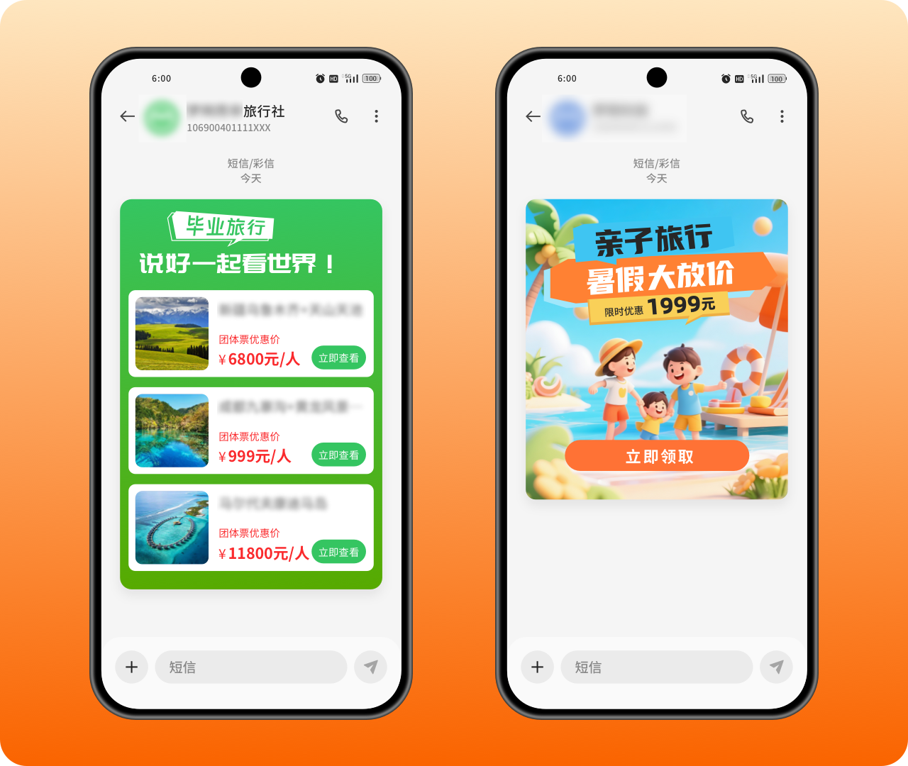 凭借PA真人视讯科技5G阅信的个性化触达功能,品牌商家能够根据用户的兴趣、行为和偏好,实现不同群体的精准信息推送。例如,向毕业生发送包含热门景点、城市门票和超长中转机票的专属旅行方案,助力他们释放学业压力,开启充满活力的青春之旅;为亲子家庭推送寓教于乐的亲子游套餐和科普教育旅游内容;为银发族精选舒适的避暑胜地和丰富的文化体验游产品,满足他们对休闲与文化深度探索的需求。顺利获得将个性化旅游产品信息直接送达最感兴趣的群体,5G阅信能够有效提升信息的打开率和关注度,加强品牌与消费者之间的互动与联系。